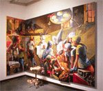 Now We Can Make Arrest:LA Riot, 1994, Oil on four canvases with assemblage, 120 x 96 in.