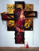 Cruxificion, 1989, Oil on canvas and panels with assemblage, 72 x 80 in.